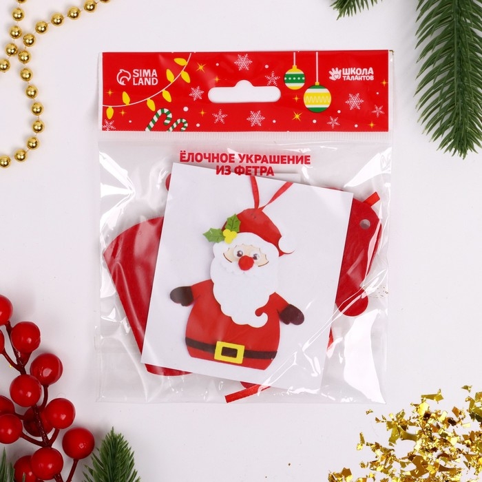 Набор для творчества - создай ёлочное украшение из фетра «Дед мороз»
