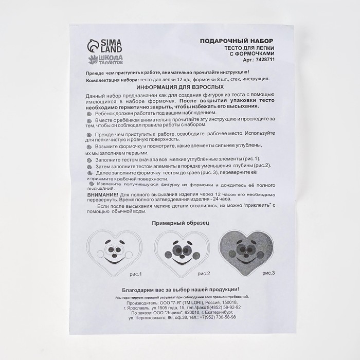 Тесто не остаётся на руках и не имеет неприятного запаха. Малышу будет комфортно заниматься с таким материалом.На открытом воздухе тесто застывает в течение 12 часов.