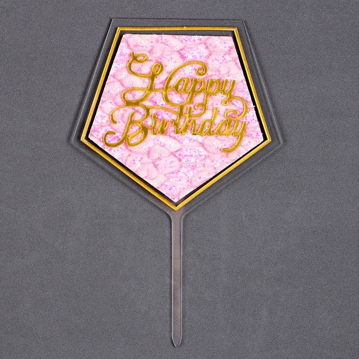 Топпер для торта «С Днём Рождения», 15×13,5 см, цвет золотой