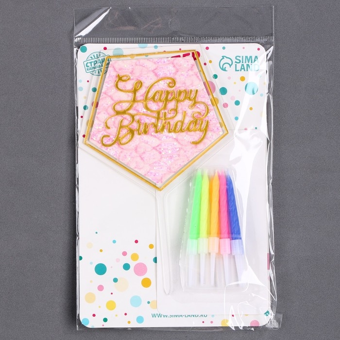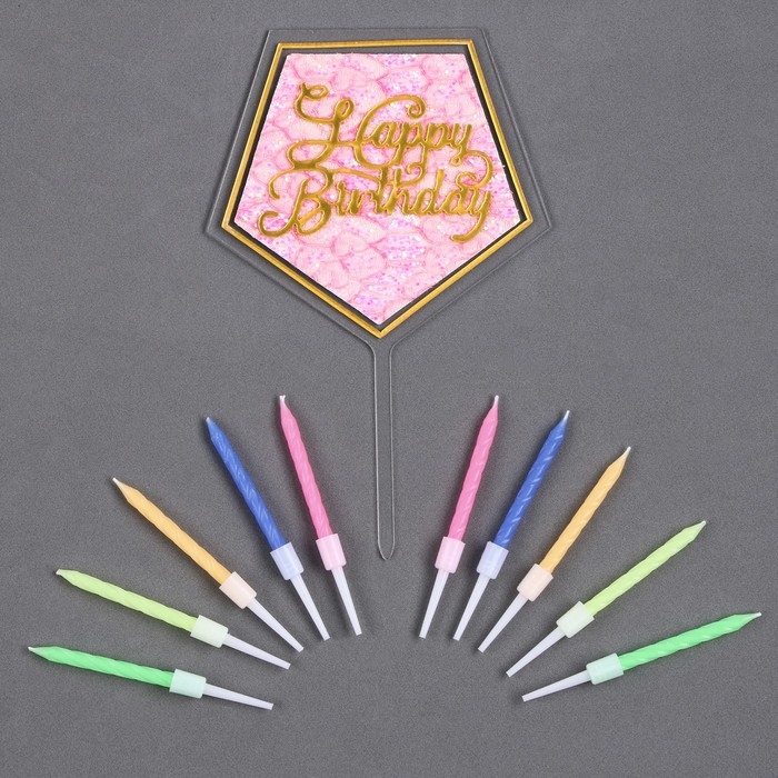 Набор для украшения торта: топпер «С днём рождения», 1 шт., 10 свечей
