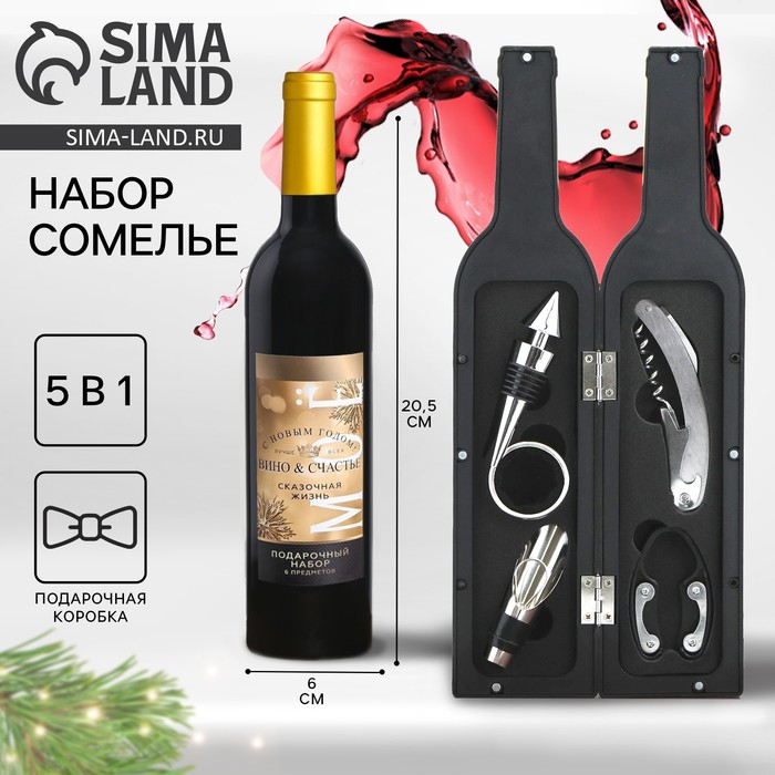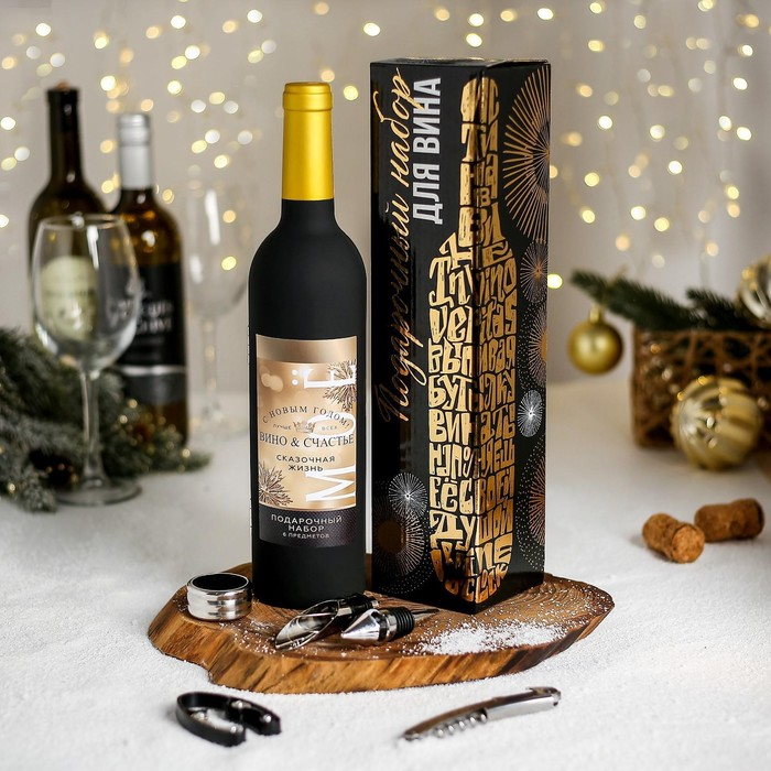 Набор для вина на Новый Год «Сказочная жизнь», 5 предметов