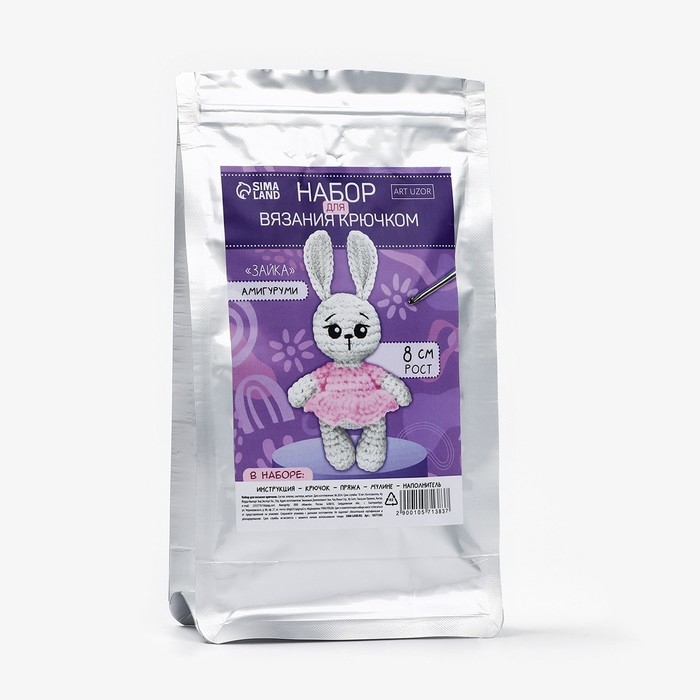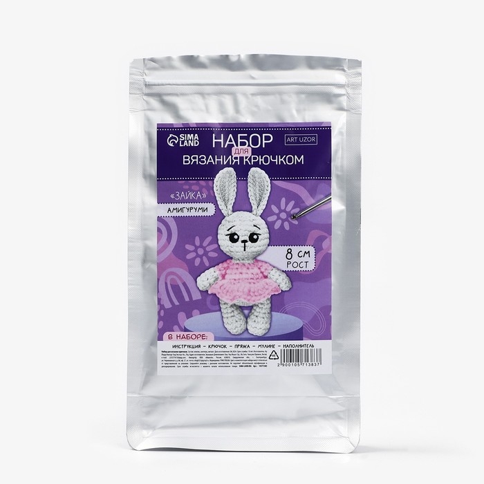 Набор для вязания крючком. Амигуруми: мягкая игрушка своими руками «Зайка», 8 см