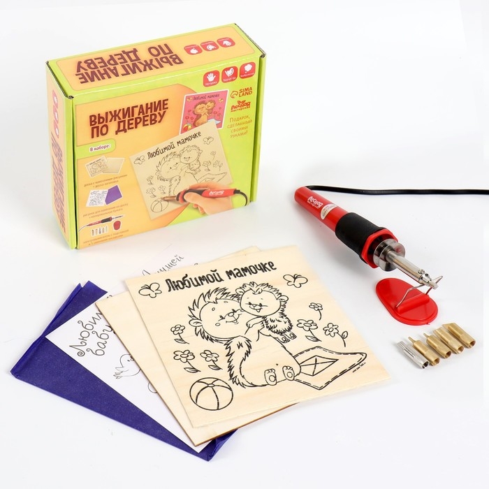 Набор для выжигания по дереву (аппарат с насадками, доски 3 шт., спил 1 шт.)