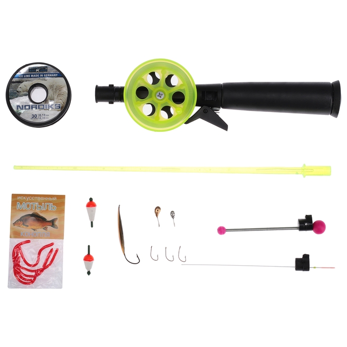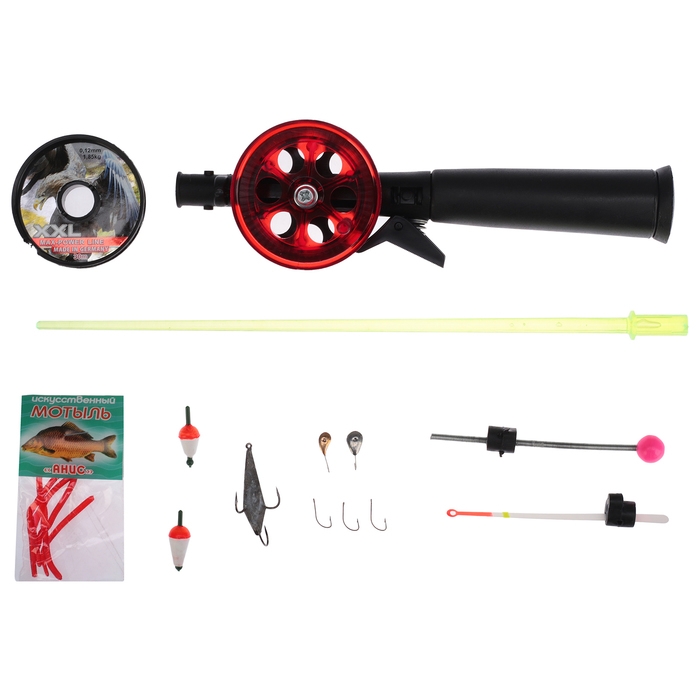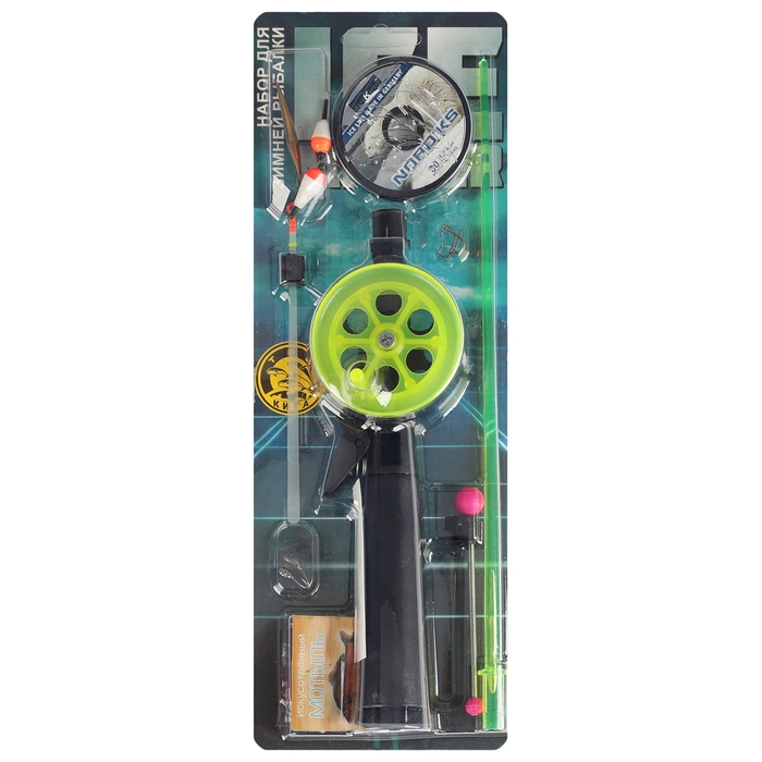 Набор рыболова подходит для новичков и отпускников. В него входит всё самое необходимое: от зимней удочки и лески до сторожка и мормышки. Блистерную упаковку удобно взять с собой, она не займёт много места.