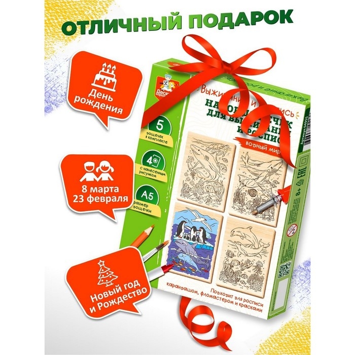 Набор досок для выжигания и росписи «Водный мир», А5, 5 шт.