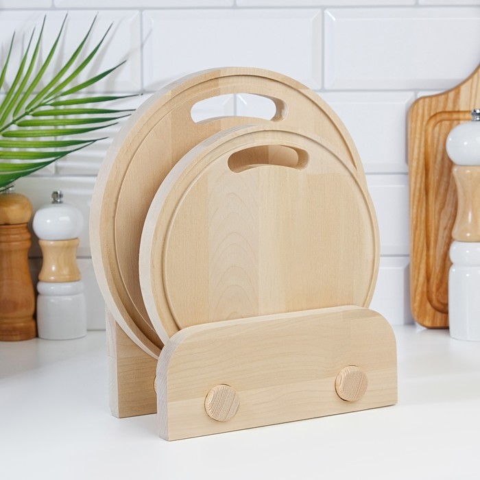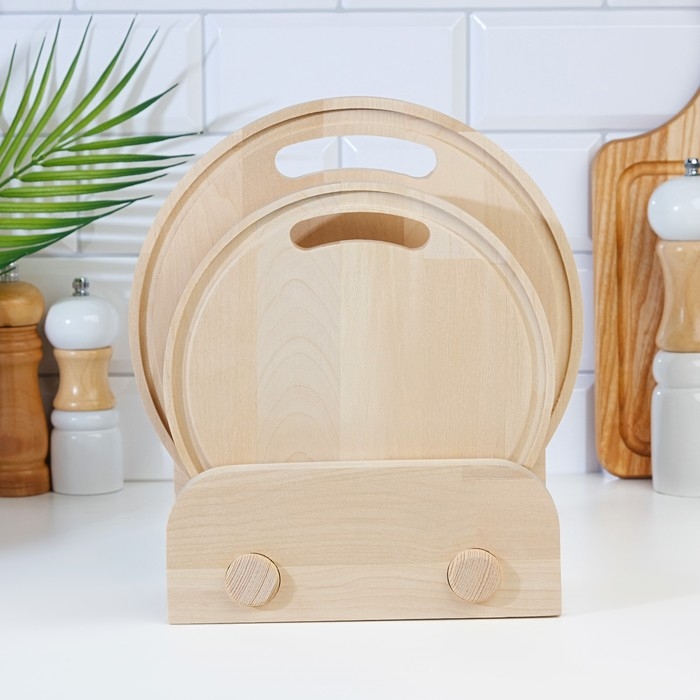 Набор досок разделочных из березы на подставке, 2 шт, 20х20 и 24х24 см.