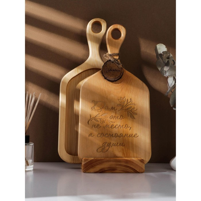 Набор досок разделочных на подставке Adelica «Дом», 2 шт, 35x18x2.5 и 32x18x2,5 см, цельный массив кедра, цвет молочный