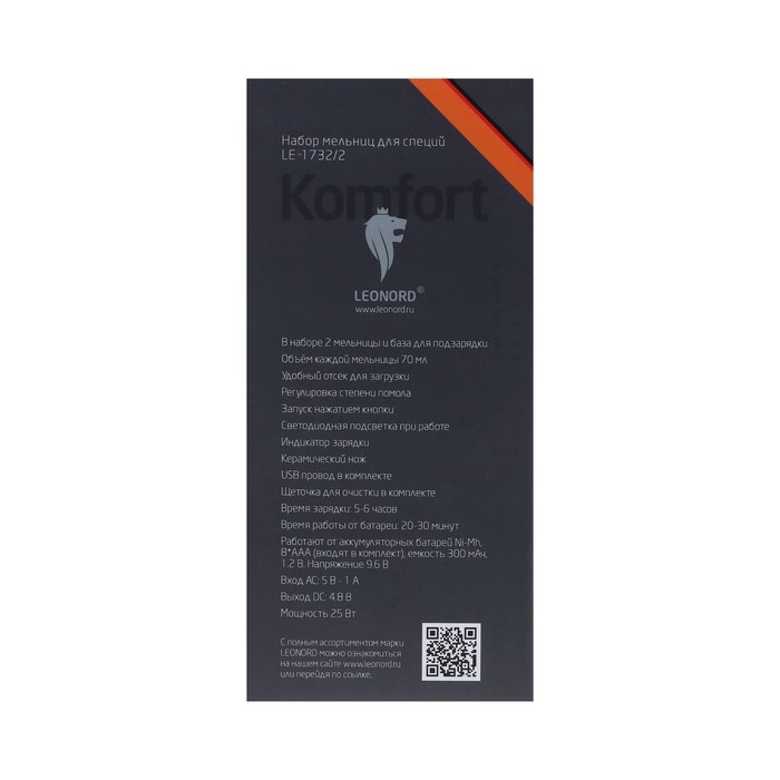 Набор электрических мельниц Leonord LE-1732/2, автоматические, металл/пластик, от АКБ