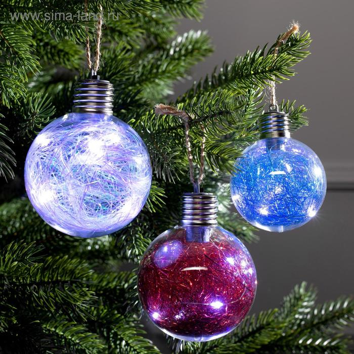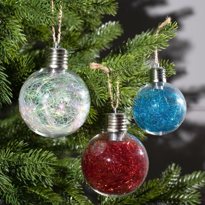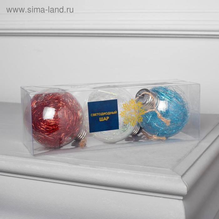 Набор ёлочных шаров «Мишура цветная» 3 шт., батарейки, 5 LED, свечение белое