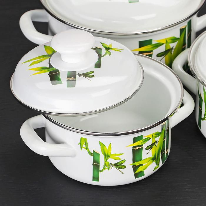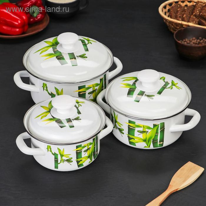 Набор эмалированных кастрюль «Бамбук», 3 предмета: 1 л, 1,5 л, 2,3 л, индукция