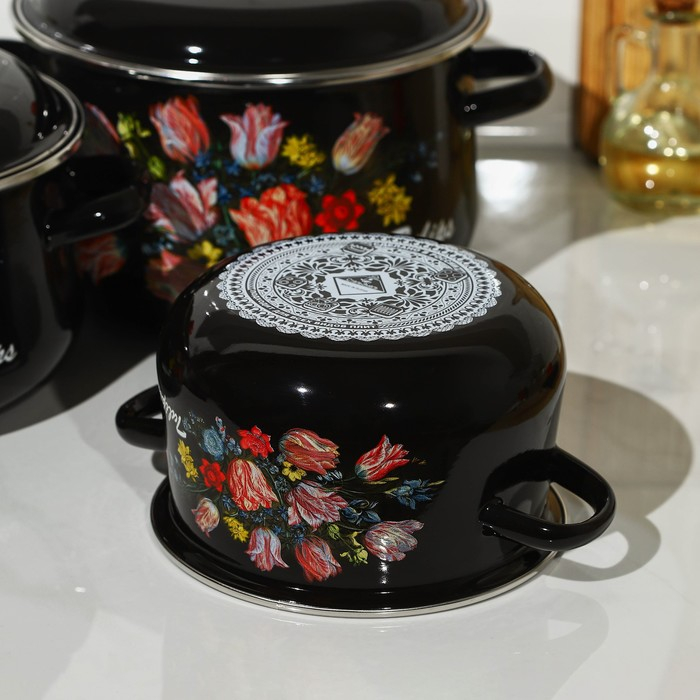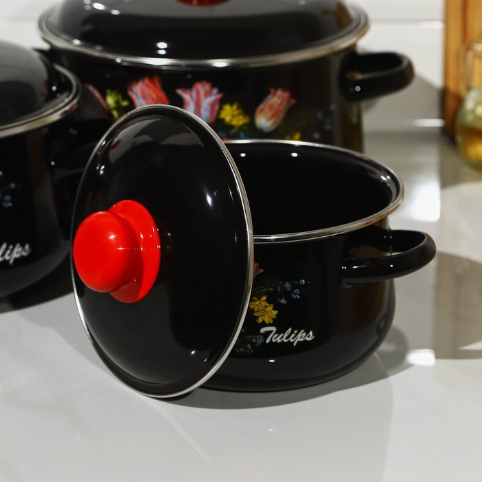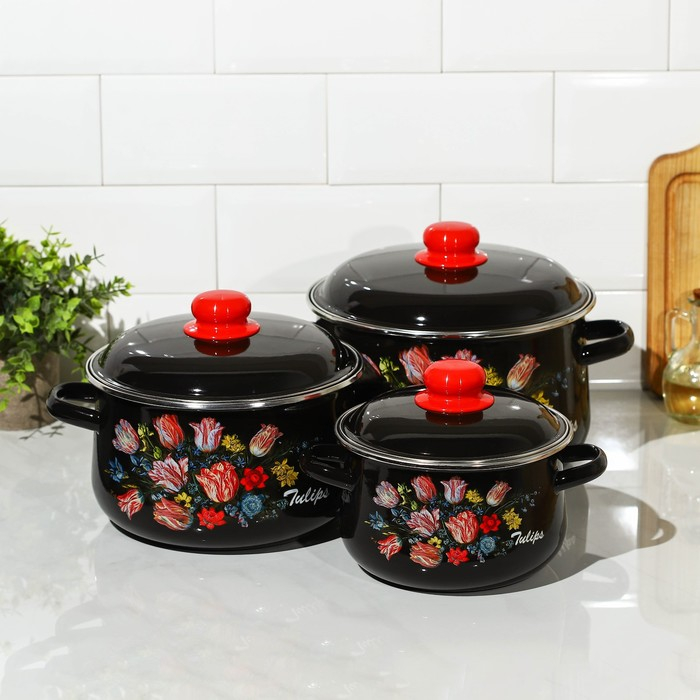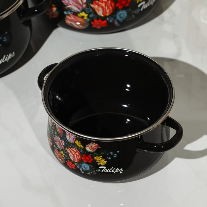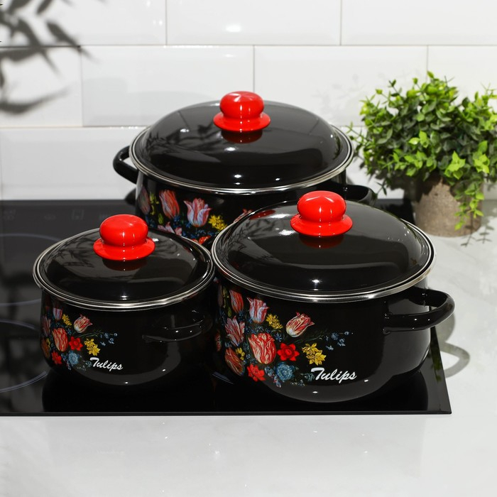 Набор эмалированных кастрюль «Букет тюльпанов», 3 предмета: 2 л, 4 л, 5,5 л, индукция