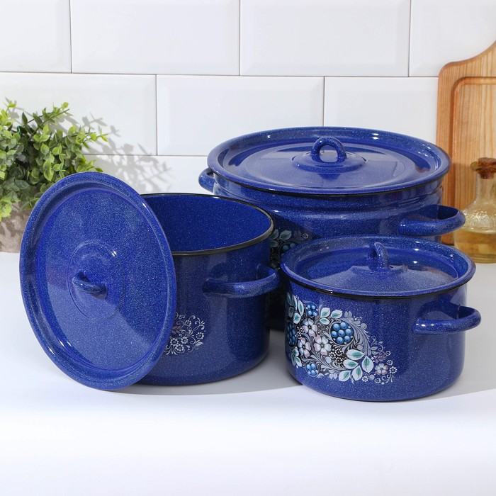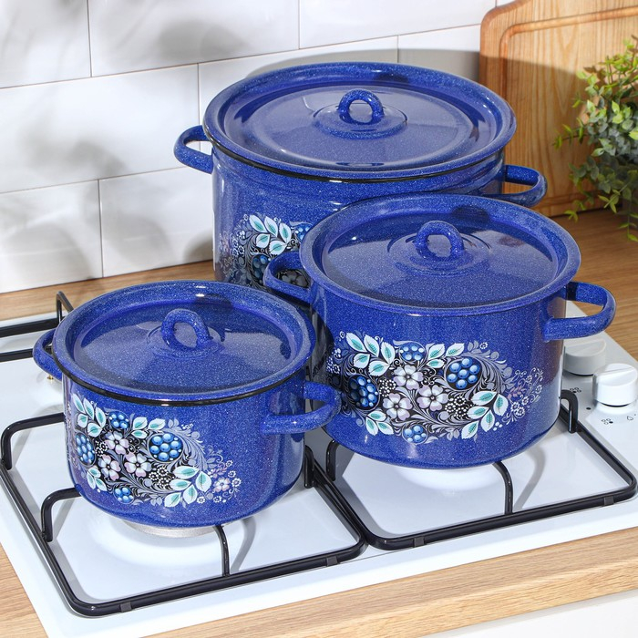 Набор эмалированных кастрюль «Голубика», 3 предмета: 2,9 л, 4,5 л, 7 л, индукция