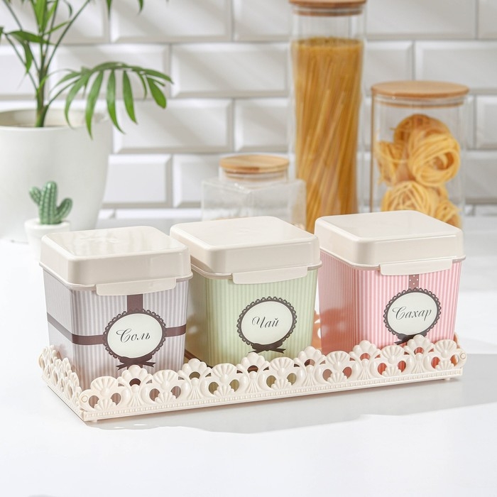 Набор ёмкостей на подставке «Уют», 1,2 л, цвет микс
