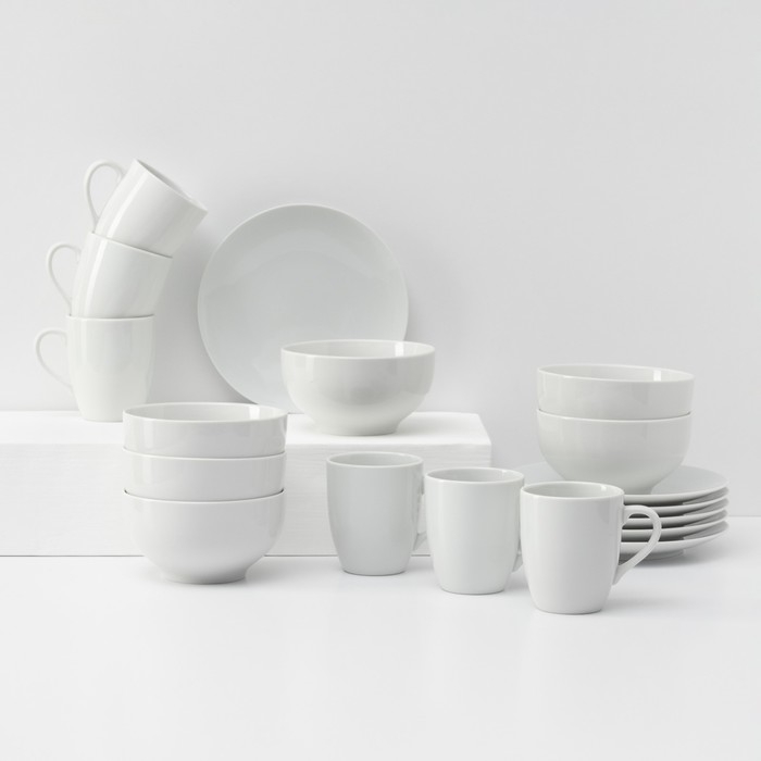 Набор фарфоровой посуды «Универсальный», 18 предметов: тарелка плоская d=20 см, пиала 650 мл, кружка 300 мл