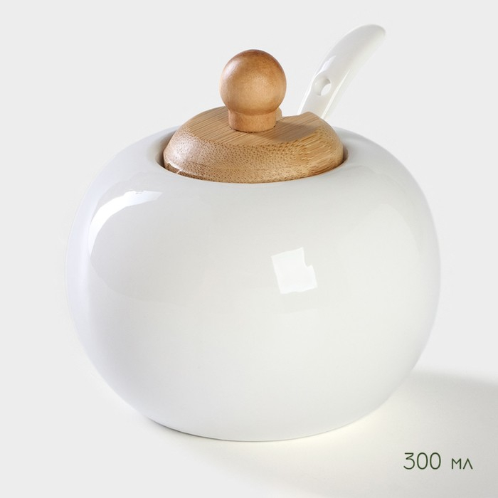 Набор фарфоровый для специй BellaTenero, 3 предмета: солонка 80 мл, перечница 80 мл, сахарница с ложкой 300 мл, цвет белый