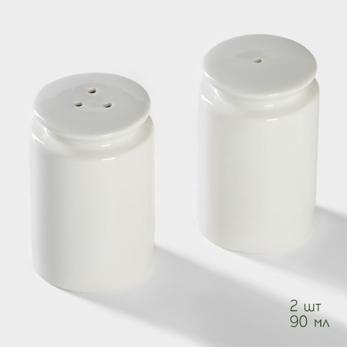 Набор фарфоровый для специй на бамбуковой подставке BellaTenero «Шарики», 2 предмета: солонка 100 мл, перечница 100 мл, цвет белый