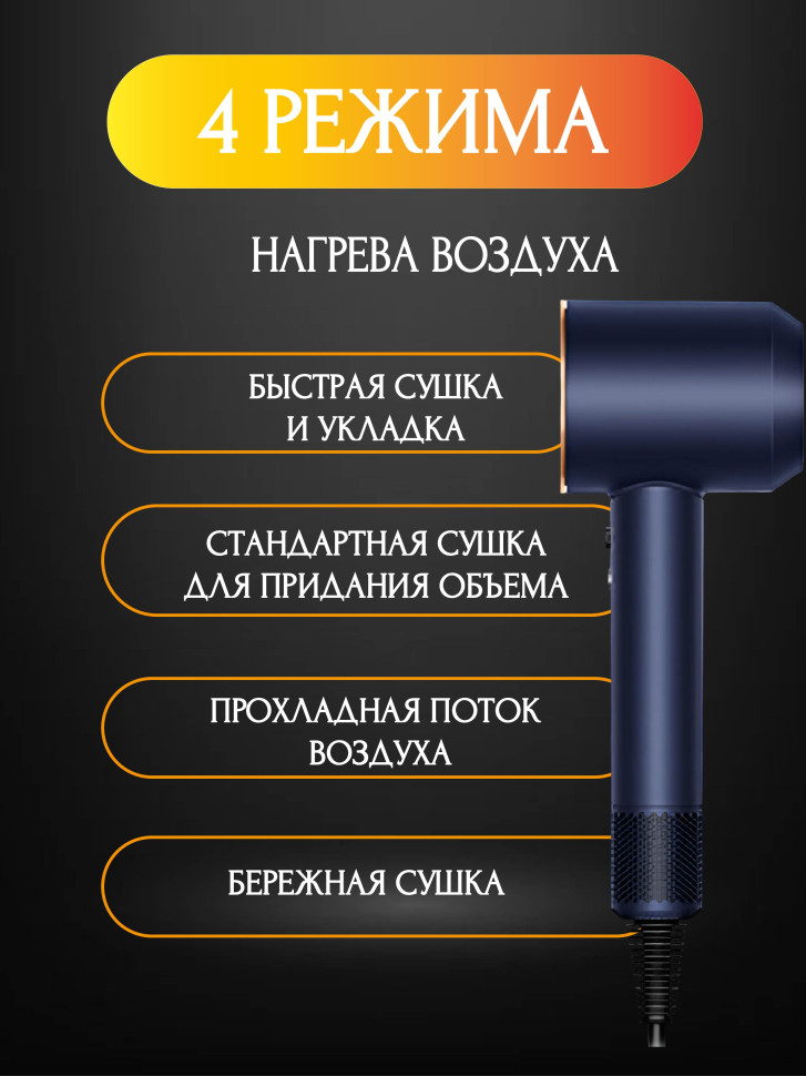 Набор фен SUPER HAIR DRYER Синий с золотом (6 в 1) 3м