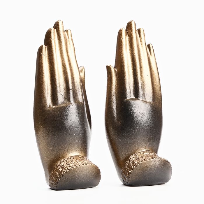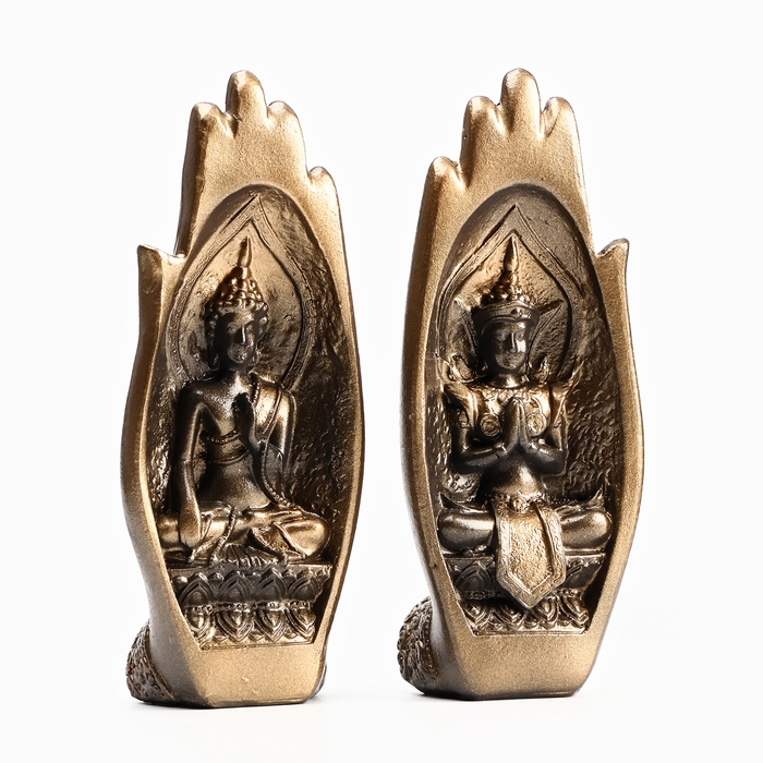 Набор фигур "Будда в руках" черная-бронза, 21см