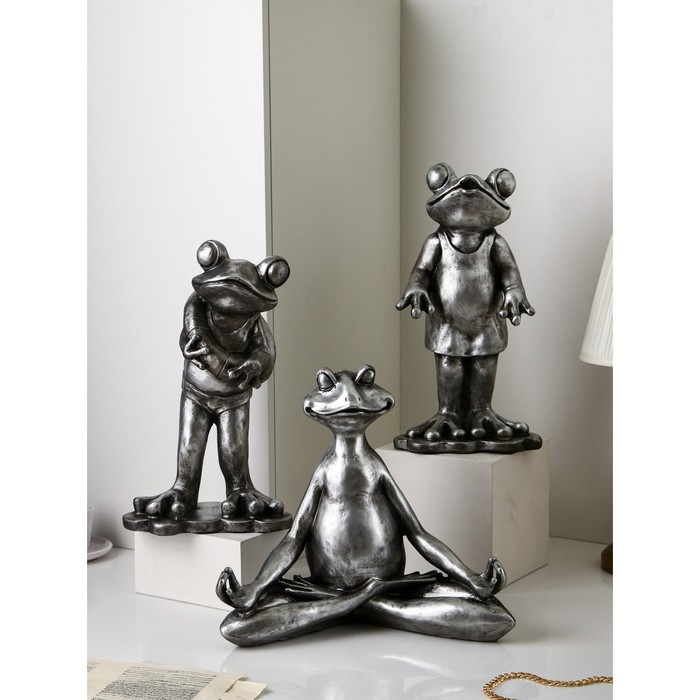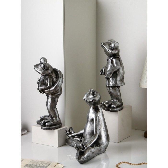Набор фигур «Лягушки», полистоун, 38 см, цвет серебро