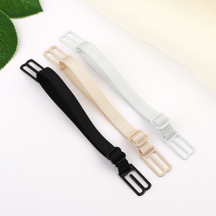 Набор фиксаторов для бретелей, 10 мм, 15-25 см, 3 шт, цвет чёрный/белый/бежевый