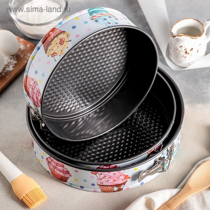 Набор форм для выпечки Доляна «Десерт. Круг», 3 шт: d=24/26/28 см, съёмное дно, антипригарное покрытие