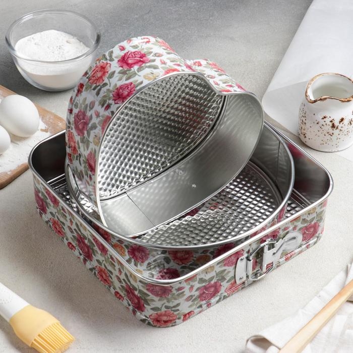 Набор форм для выпечки Доляна «Розарий», 3 предмета: d=25/24/21 см, съёмное дно