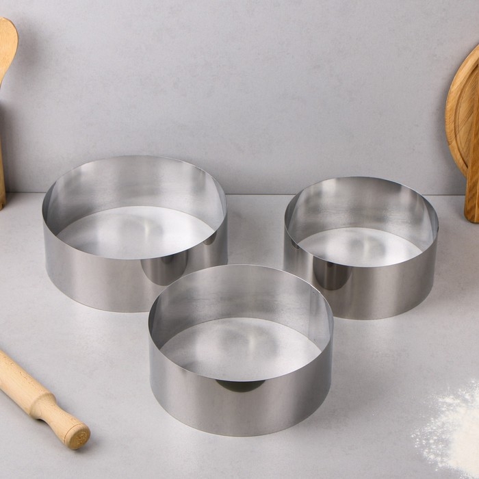 Набор форм для выпечки и выкладки «Круг», d=20 см, 22 см, 24 см, h= 8.5 см, 3 шт