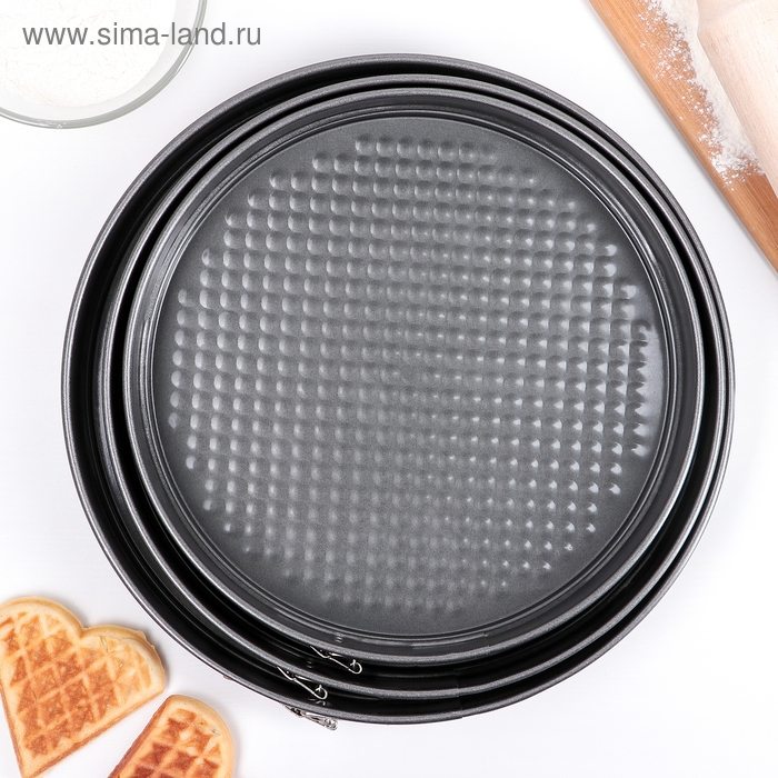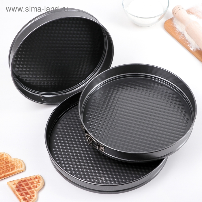 Набор форм для выпечки Доляна «Элин. Круг», 3 предмета: d=24/26/28 см, съёмное дно, антипригарное покрытие, цвет чёрный