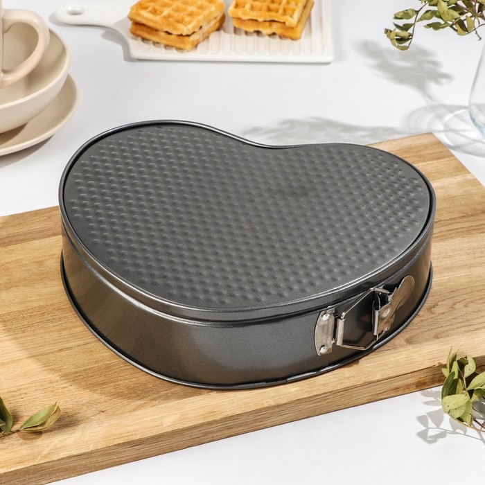 Форма для выпечки Доляна «Элин. Сердце», 23,5×22×6,8 см, съёмное дно, антипригарное покрытие, цвет чёрный