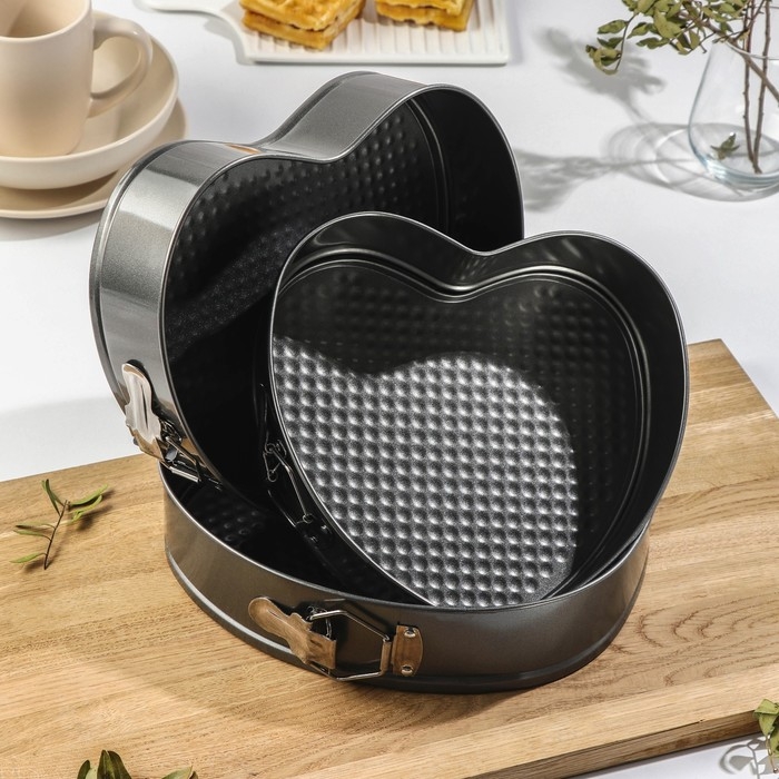 Набор форм для выпечки разъёмных Доляна «Элин. Сердце», 3 предмета: 23/25/29×6 см, антипригарное покрытие, цвет чёрный