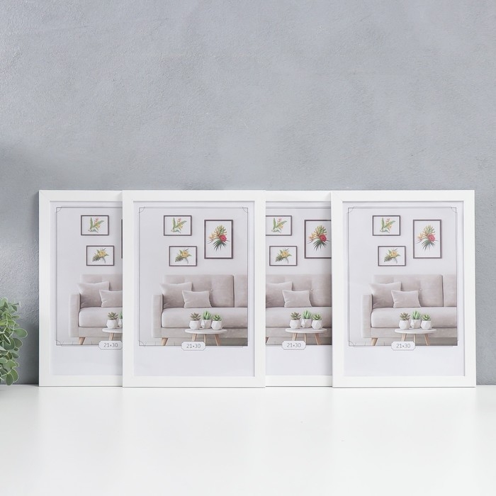 Набор фоторамок МДФ "OfficeSpace" 21х30 см, 4 шт, белый (пластиковый экран)