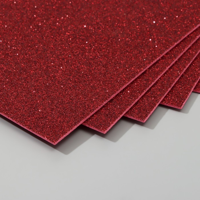 Набор глиттерного фоамирана (5 листов) 2 мм, 20х30 см, темно-красный