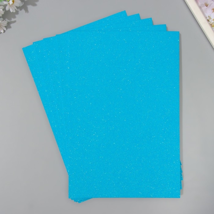 Набор глиттерного фоамирана (5 листов) 2 мм 20х30 см, ярко голубой