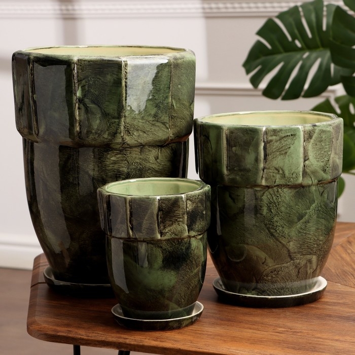 Набор горшков 3 шт. "Башня" зеленый 11 л/ 5 л/1,7 л