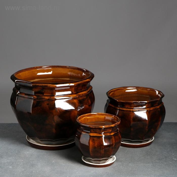 Набор горшков 3 шт. "Мираж" коричневый: 14,5л, 5,3л, 2л
