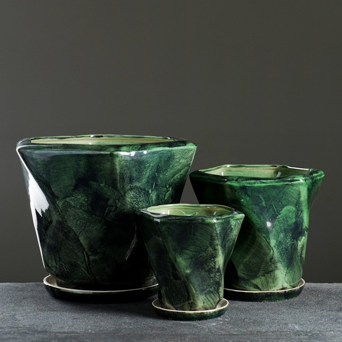 Набор горшков 3 шт "Рубин" зеленый, 25 х 33 см, 20 х 25 см, 16 х 17 см, 8,5 л, 3,7 л, 1,5 л