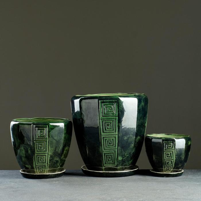 Набор горшков 3 шт. "Спарта" зеленый: 11,5л, 5,л, 1,8л