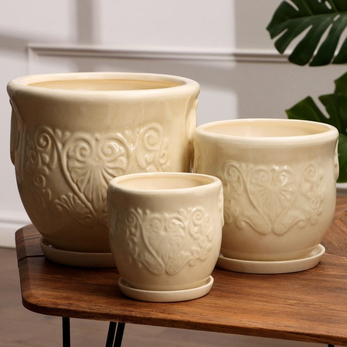 Набор горшков 3шт. "Сириус" белый: 8,5л, 3,5л, 1,6л