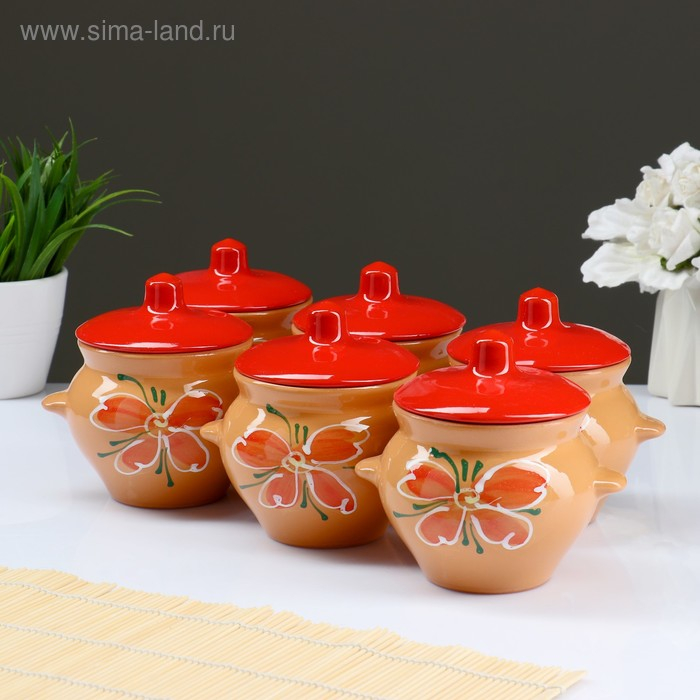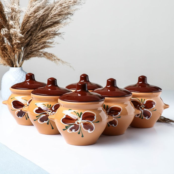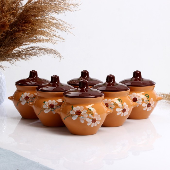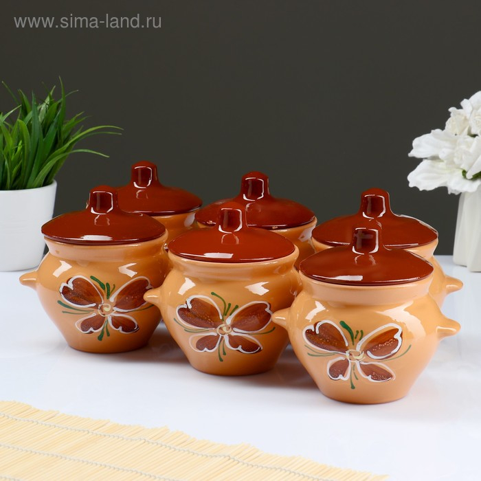 Набор горшков №5 с ручками 6х0,5л, василек топленое молоко