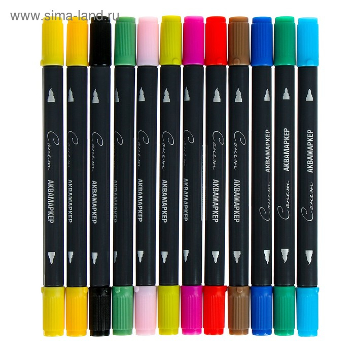 Набор художественных маркеров "Сонет", 12 цветов, водная основа, двусторонний: пулевидная/кисть, основные цвета, 150411173