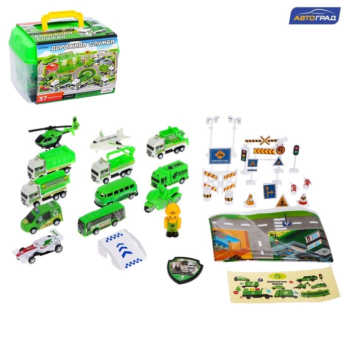 Игровой набор «Дорожная служба» поможет малышу организовать работу всего городского транспорта и поддерживать порядок на всех дорогах. Грузовики, гоночный автомобиль, автобус, вертолёт — такое разнообразие транспортных средств поможет смоделировать реальные ситуации на дороге и в небе. Дорожные знаки и игровое поле в наборе сделают игру реалистичнее и интереснее, помогут ребёнку изучить правила дорожного движения и безопасности на дороге.