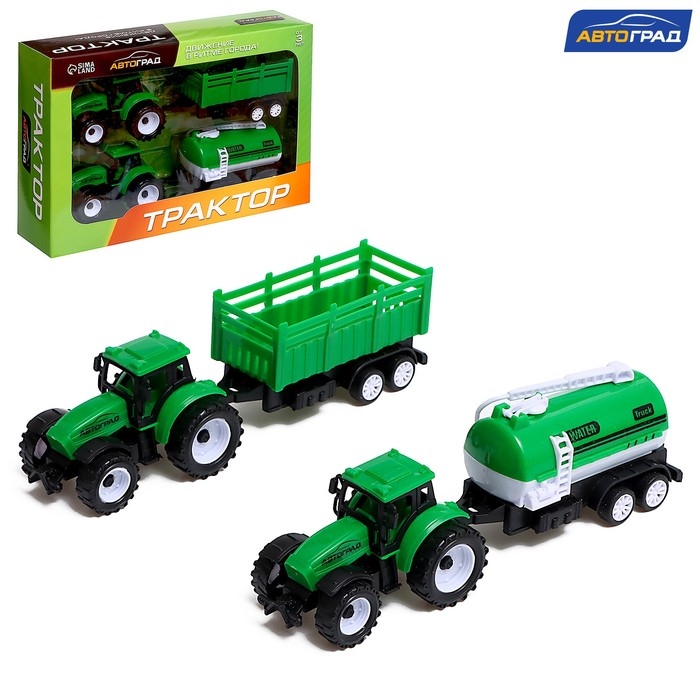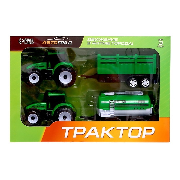 Игровой набор «Автоград» — два детально проработанных трактора с прицепами. С ними ребёнок представит себя профессиональным водителем спецтранспорта. Это прекрасный подарок для маленького любителя техники.