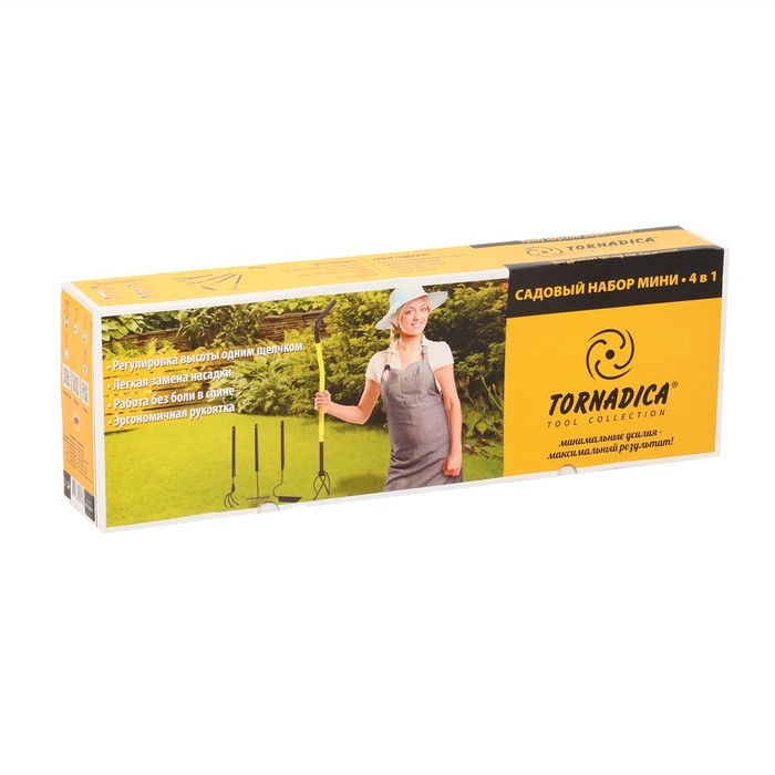 Набор инструмента TORNADICA «Мини 4», 4 предмета: рыхлитель, грабли, культиватор, бороздовичок