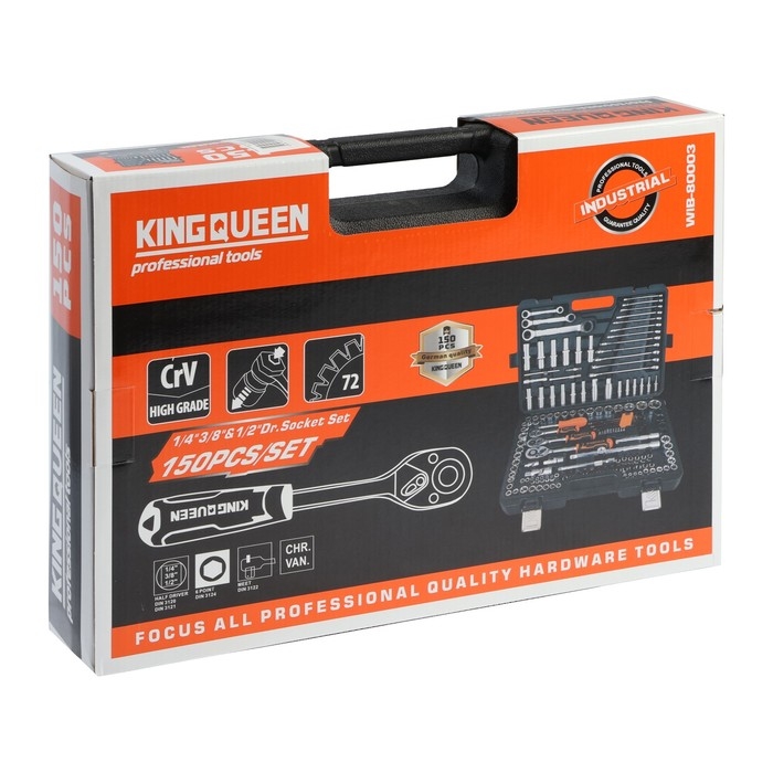 Набор инструментов автомобильный KINGQUEEN WIB-80003, 72 зуба, 1/2 3/8 1/4", 150 предметов
