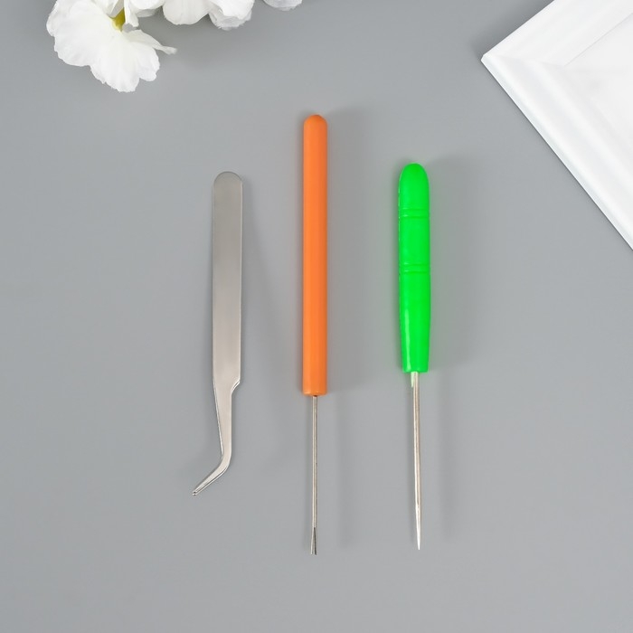 Набор инструментов для квиллинга 3 предмета: инструмент разрез 0,7 см, шило и пинцет 10 см