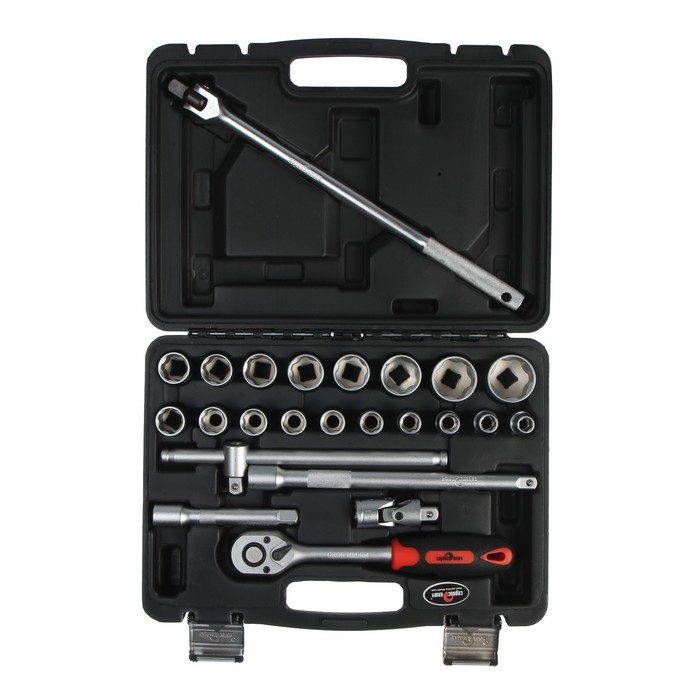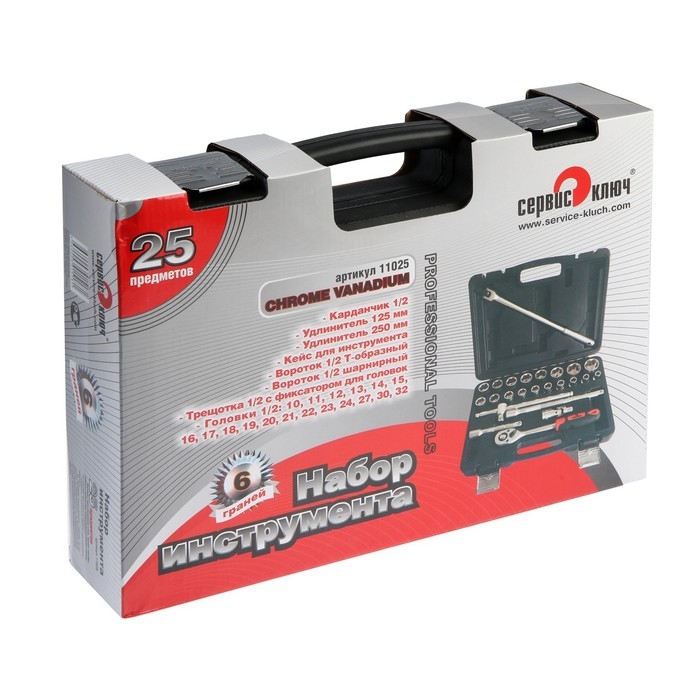 Набор инструментов СЕРВИС КЛЮЧ, торцевые головки, трещотка, удлинители, 25 предметов