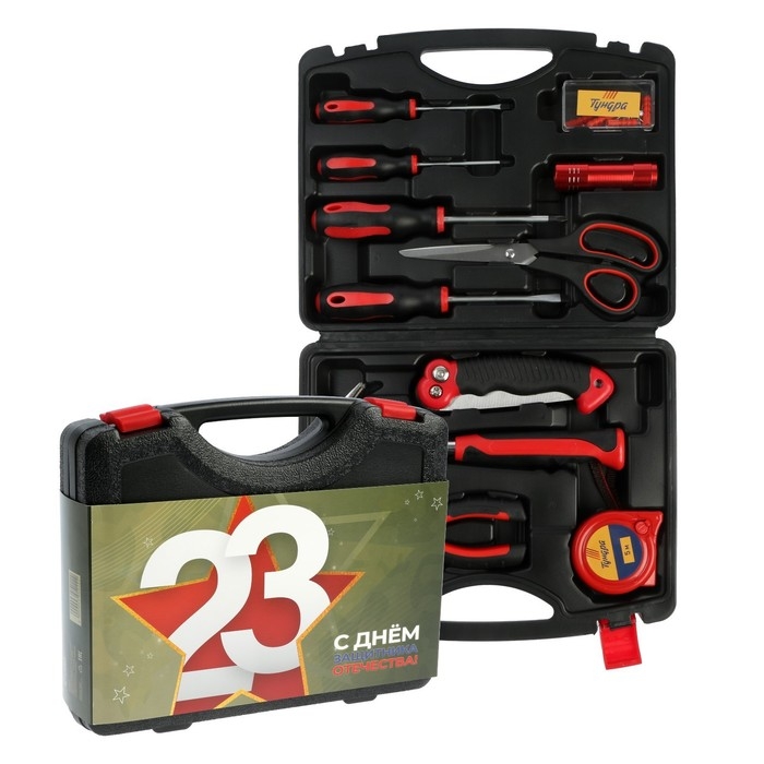 Набор инструментов в кейсе ТУНДРА "23 ФЕВРАЛЯ", в подарочной упаковке, 11 предметов