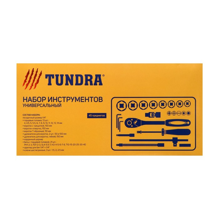 Набор инструментов в кейсе ТУНДРА, автомобильный, CrV, 1/4", 45 предметов