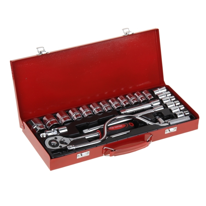 Набор инструментов в металлическом кейсе ТУНДРА, автомобильный, CrV, 1/2", 24 предмета