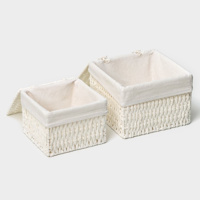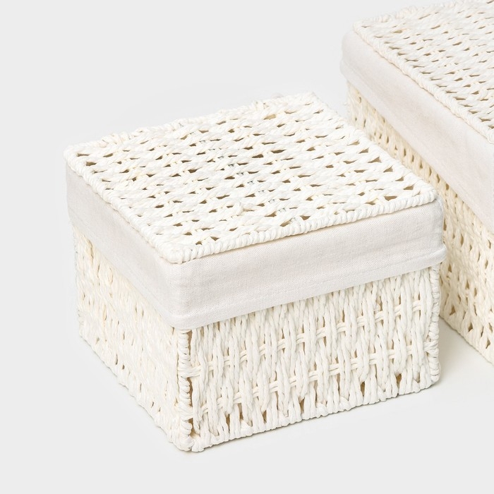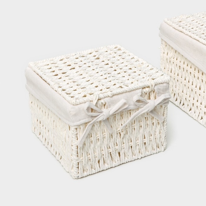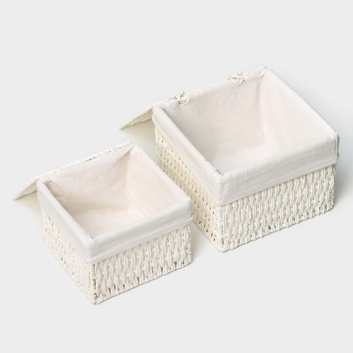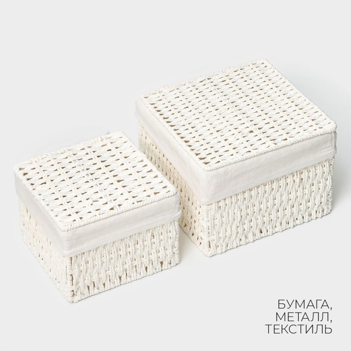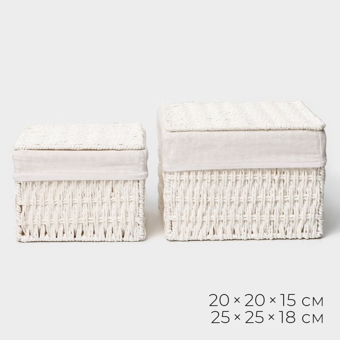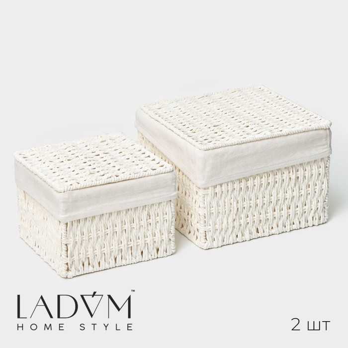 Набор интерьерных корзин ручной работы с крышкой LaDо́m, 2 шт, размер: 20×20×15 см, 25×25×18 см